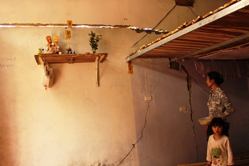 Hơn một tuần nay, chục hộ dân tại đội 6, thôn Sơn Trung, xã Yên Sơn huyện Quốc Oai, bỗng dưng mất nhà cửa vì tình trạng sụt lún đất diễn ra.. Nguyên nhân sâu xa của sự cố vẫn chưa được làm rõ khiến người dân trên địa bàn càng hoang mang. Những vết nứt gãy cắt đôi nhà khiến người dân hoang mang, lo lắng Che bạt ngủ ngoài vườn Theo các hộ dân cho biết, hiện tượng sụt, lún đất bắt nguồn từ việc hộ gia đình anh Nguyễn Đắc Cương (đội 6, thôn Sơn Trung) khoan giếng lấy nước phục vụ sinh hoạt. Trong quá trình khoan được thực hiện từ ngày 2/4 đến trưa ngày 4/4, độ khoan sâu hơn 50m. Sau khi rút mũi khoan lên chuẩn bị cắm ống chống có hiện tượng nền đất, tường nhà và sân nhà của các hộ xung quanh bị rạn, sụt, nứt xảy ra. Các vết nứt ngày càng sâu và rộng hơn. Theo bà Nguyễn Thị Vị - hộ gia đình bị ảnh hưởng nặng nề nhất, lúc xảy ra sự việc bà đang bế cháu nội đứng xem khoan giếng. Tuy nhiên, khi họ vừa rút mũi khoan ra bà Vị bỗng thấy cổng nhà mình tự nhiên bị nứt một mảng lớn. Khoảng 40 phút sau, vết nứt ngày càng to dần và lan ra khắp mặt sân trước khiến gia đình bà Vị vô cùng hoảng hốt. Ngay lúc đó, nhiều hộ gia đình sống gần công trình cũng xảy ra tình trạng tương tự. Bà Vị kể lại: “Do nghi ngại lý do dẫn đến hiện tượng lún, nứt bất thường là do nhà hàng xóm khoan giếng nên ngay lúc đó các hộ dân đã yêu cầu họ phải dừng lại. Tuy nhiên đến nay, tình trạng lún, nứt mỗi ngày một tồi tệ hơn khiến người dân rất lo lắng”. Có nhà nhưng gia đình bà Vị phải căng bạt ngủ ngoài vườn Dẫn chúng tôi ra phía sân sau nhà, bà Vị cho hay gia đình bà có 9 nhân khẩu, các cháu nhỏ hiện phải tá túc ở nhà họ hàng vì sợ tình trạng sụt, lún có thể gây đổ nhà. Còn bà Vị và các con thì vẫn phải túc trực tại đây vì còn đàn lợn giống và đàn gà lên tới hàng trăm con không biết chuyển đi đâu. Từ hôm xảy ra sự việc tối nào bà Vị cũng phải mắc màn ngủ ngoài vườn. Cũng trong tình trạng tương tự, gia đình bà Phùng Thị Tý với 7 nhân khẩu, ở vị trí đối diện với mảnh đất của nhà ông Cương mấy ngày nay như ngồi trên đống lửa. Phần lớn diện tích sân, vườn, công trình phụ, hàng rào, cổng…được xây dựng khá kiên cố bỗng dưng nứt toác, đổ, sụt lún dần. Từ hôm xảy ra sự cố, cả gia đình bà Tý phải đến ở nhờ nhà người thân, toàn bộ số gia cầm đang chăn nuôi không biết gửi ai nên người nhà bà hàng ngày phải thay nhau trông nom. Sự việc hi hữu bất ngờ ập đến với người dân nơi đây, khiến đời sống bị đảo lộn. Đặc biệt, gia đình đình bà Nguyễn Thị Hợi đã dự định tổ chức cưới cho con gái vào ngày 15/4 tới, nhưng do nhà bị nứt và chính quyền không cho tổ chức tại nhà nên gia đình phải đi thuê nhờ địa điểm tại nhà người thân để tổ chức đám cưới. Anh Nguyễn Phú Thắng nhận định, trước khi chưa khoan giếng nhà anh Cương thì nước nhà anh vẫn sử dụng bình thường, nhưng sau đó thì đất sụt, lún, ống dẫn nước, vòi bơm bị gẫy, mất nước hoàn toàn. Sự việc khiến cho cuộc sống người dân đảo lộn, bất an, mọi hoạt động kinh tế phải tạm gác lại. Chờ đợi từ… chính quyền Hiện tượng sụt, lún gây hư hại nặng nhiều công trình phụ, nhà ở khiến các hộ phải dựng lều ở ngoài vườn để ở. Ngay sau khi sự việc xảy ra, các hộ dân đã trình báo chính quyền địa phương và có đơn yêu cầu giúp đỡ tìm nơi ở tạm. Theo ông Nguyễn Phú Thành, Chủ tịch UBND xã Yên Sơn cho biết, Ngay sau khi sự việc xảy ra, xã đã tiến hành họp báo cáo UBND huyện. UBND huyện Quốc Oai đã chỉ đạo các cơ quan chức năng của huyện phối hợp với xã Yên Sơn kiểm tra thực địa, trong đó chú trọng triển khai công tác di dời người và tài sản của các hộ gia đình bị ảnh hưởng ra khỏi khu vực nguy hiểm. Khu dân cư đã thành "Khu vực cấm", phương án giúp đỡ người dân trong hoàn cảnh hiện tại “Phương hướng trước mắt của xã là đảm bảo an toàn cho các hộ dân trong khu vực này. Từ ngày 4/4, xã đã lập tổ chốt trực, cử cán bộ địa chính xã giám sát, theo dõi thường xuyên diễn biến sụt lún; bố trí lực lượng công an, dân quân địa phương canh gác 24/24 giờ tại khu vực sụt, lún đất, cắm biển khu vực nguy hiểm để người dân được biết” - ông Thành cho biết. Trước tình hình diễn biến sụt lún tại xã Yên Sơn ngày càng nghiêm trọng, UBND huyện đã có báo cáo gửi UBND TP Hà Nội quan tâm chỉ đạo cơ quan chuyên môn khẩn trương xác định nguyên nhân và hướng giải pháp khắc phục sự cố sụt, lún, chính sách hỗ trợ thiệt hại cho các hộ dân bị ảnh hưởng về nhà cửa do sự cố sụt, lún gây ra tại xã Yên Sơn. Tuy nhiên, sau hơn một tuần xảy ra sự cố, các cơ quan chức năng vẫn chưa tìm ra nguyên nhân chính gây nên sụt lún tại đây khiến người dân trong khu vực vẫn đang phải sống trong cảnh bất